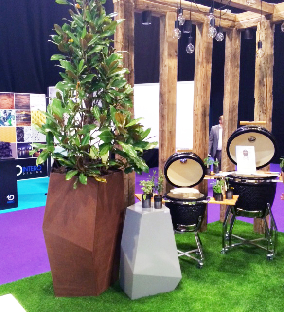 Másik nagyon izgi termék is bemutatkozott a standon. A COR-TEN acél virágládák. Sokféle csodaszép felülettel és bármilyen egyedi formában megrendelhetőek az Innosteel Design-nál.