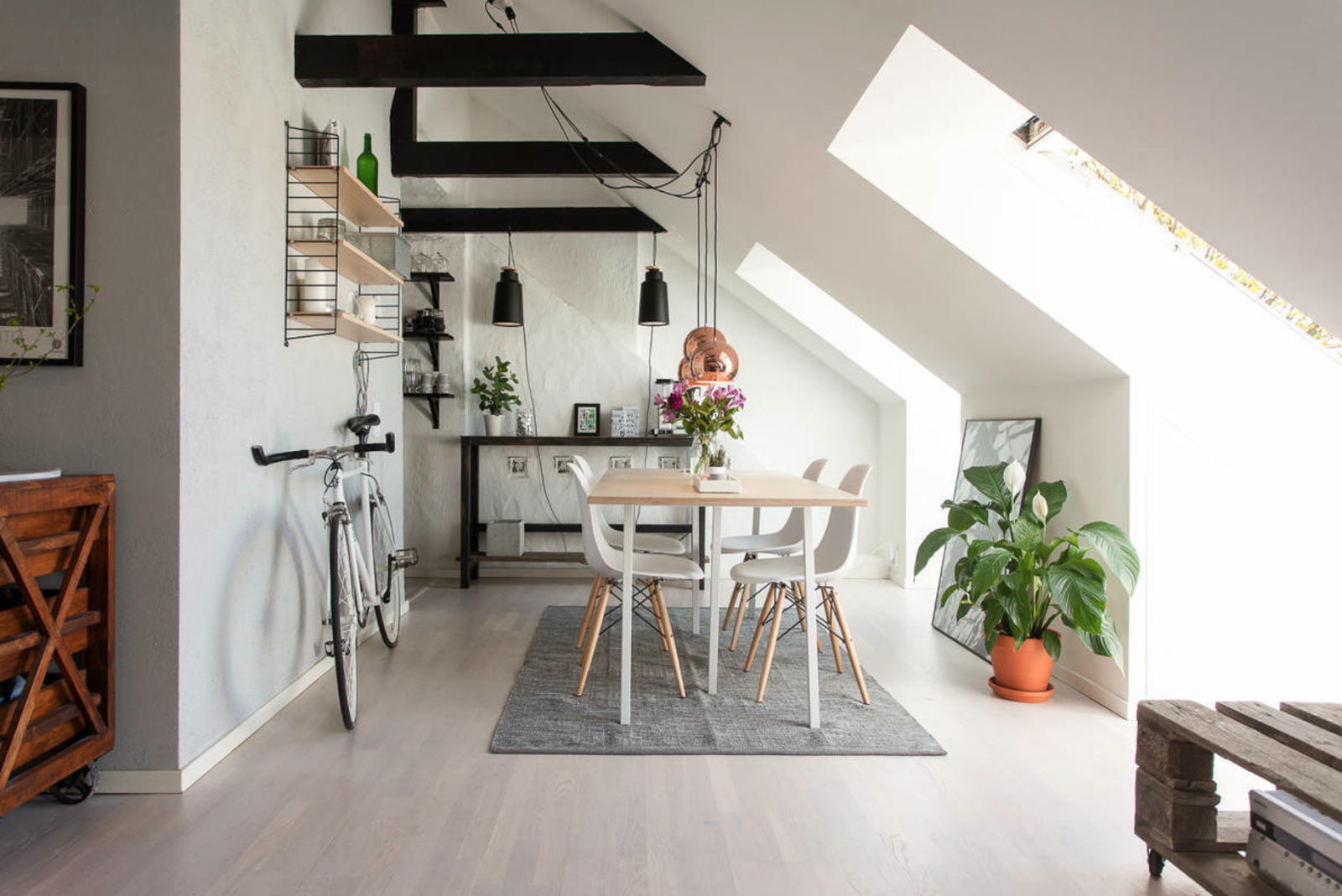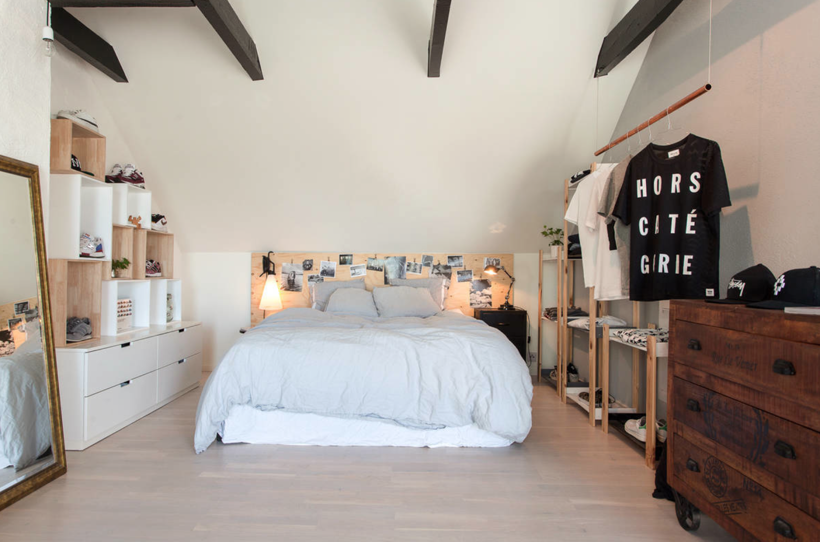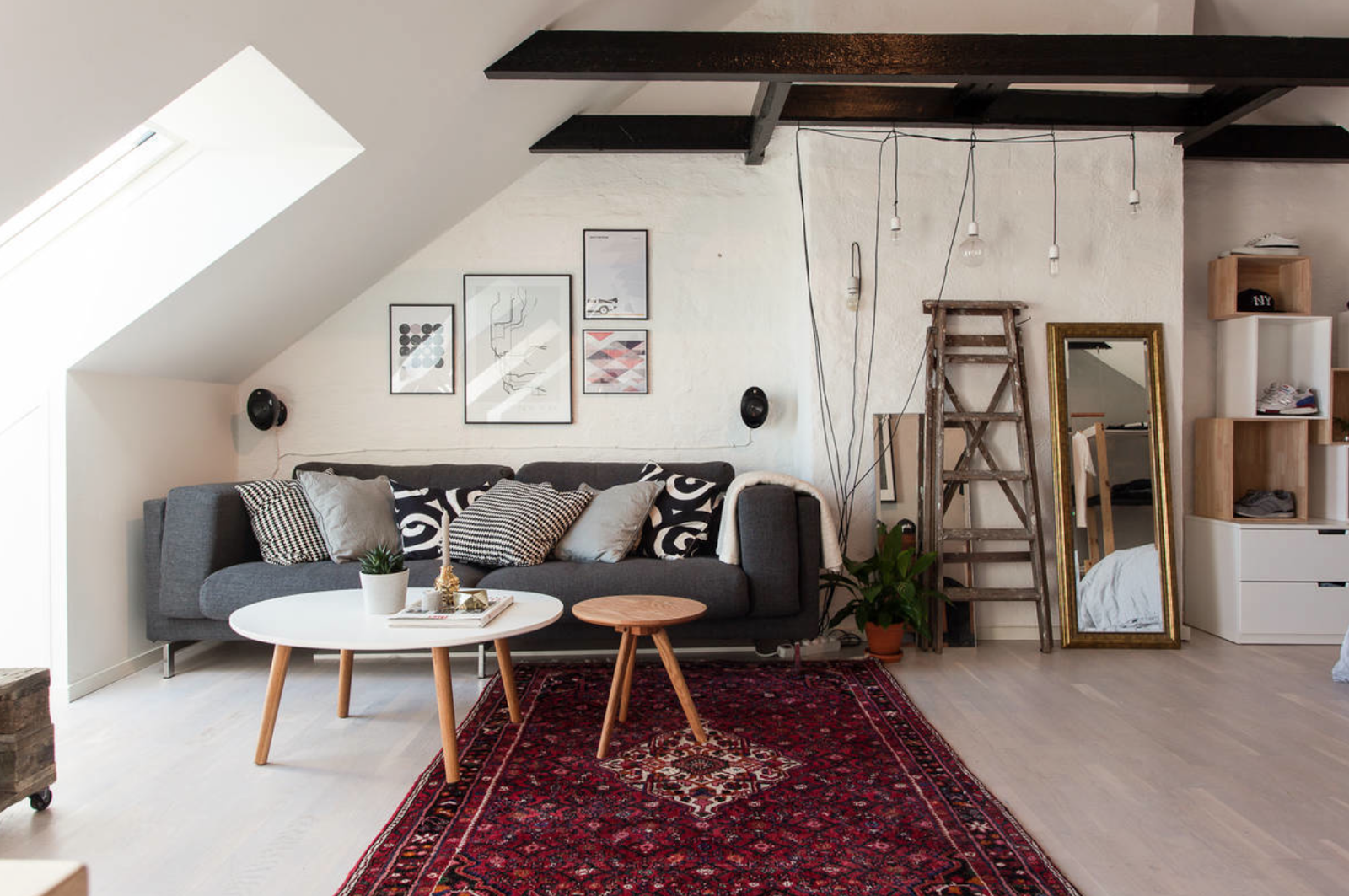 Ez a tetőtéri egy légterű lakás is nagyon bejön, bírom az eklektikus össze-visszaságot, talán csak lámpa ügyben érzem kicsit soknak a felhozatalt… Ezzel együtt hangulatában, stílusában közel áll hozzám ez a kislakás.