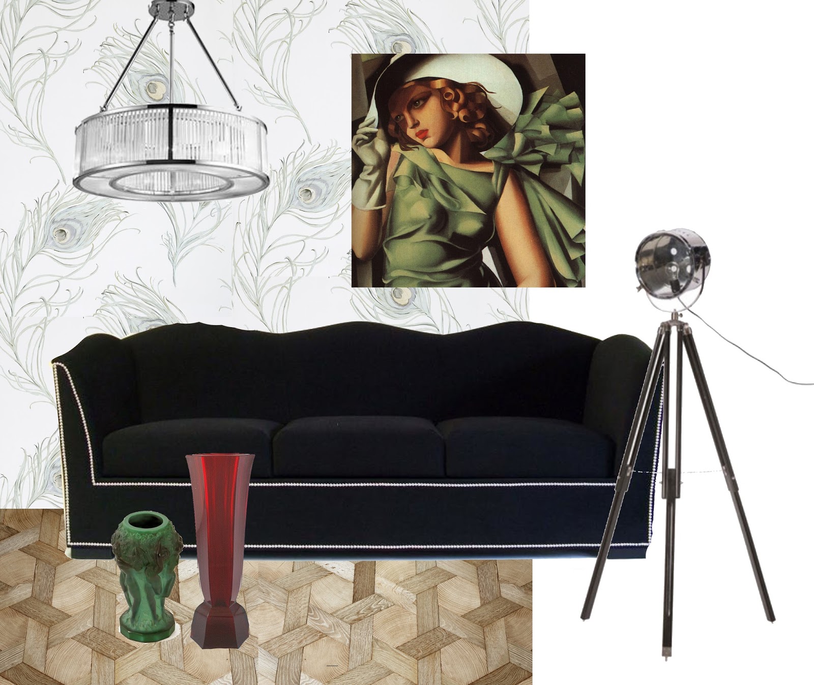 Néha szeretek elgondolkodni fiktív megrendelők extrém kívánságain… Például ha ma egy ArtDeco enteriőrt kellene berendeznem: Tamara de Lempicka 20-as éveket felidéző festménye ihletett meg (a zöld ruhás nő a képen…)