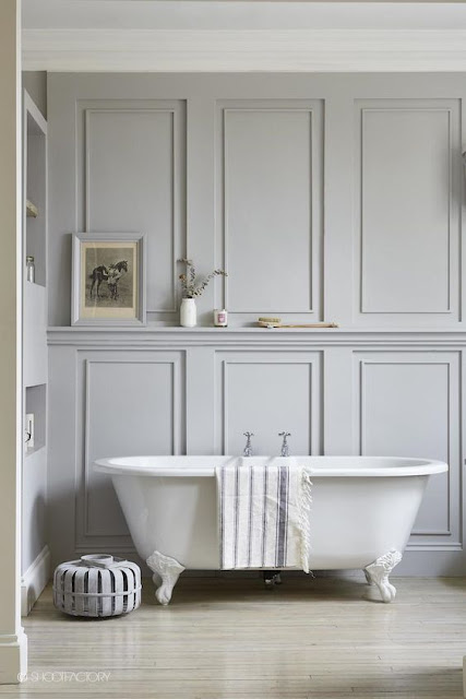 Látványos, és még mindig nem bonyolult: ha csak a falfelület alsó részét dekoráljuk. Kell egy lábazati szegés, egy-egy keret, és egy párkány szerű záró elem, amely vastagabb.