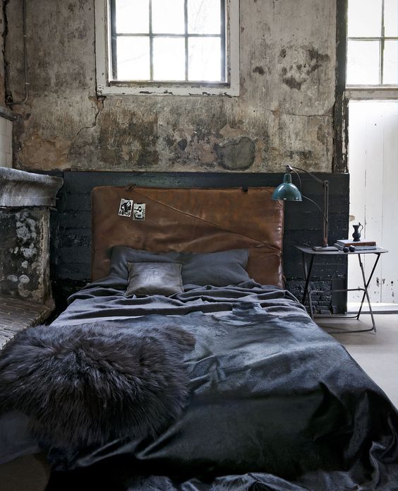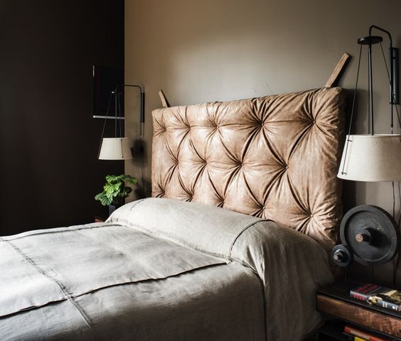 A hálószoba stílusával gondban voltam, mert szeretem a kárpitozott ágyvégeket, ugyanakkor ebben a stílusban nem érezném helyénvalónak a tűzött változatot. Néztem deszkázott ágyvégeket, diy megoldásokat régi ajtószárnyakból, stb, de mind olyan izzadságszagúnak hatott. Nem akarok én ebben a házban nagyot villantani, vagy bármit túlgondolni: magunknak szeretnék egy élhető környezetet, nem egy állatorvosi referencialovat… :) Egyszer csak bevillant: lezserül megvarrt, rogyasztott ágy kéne nekem, ami nagyon finom bőrből készült.