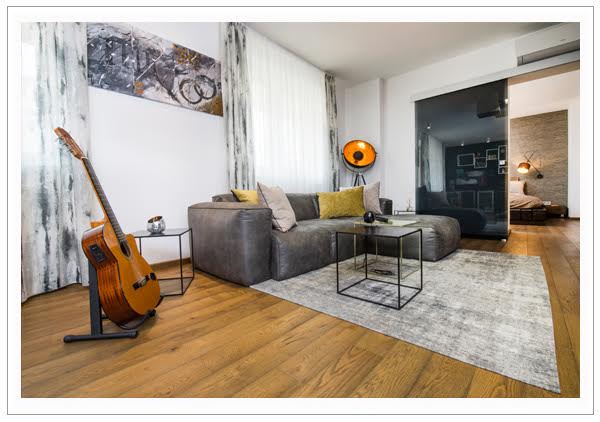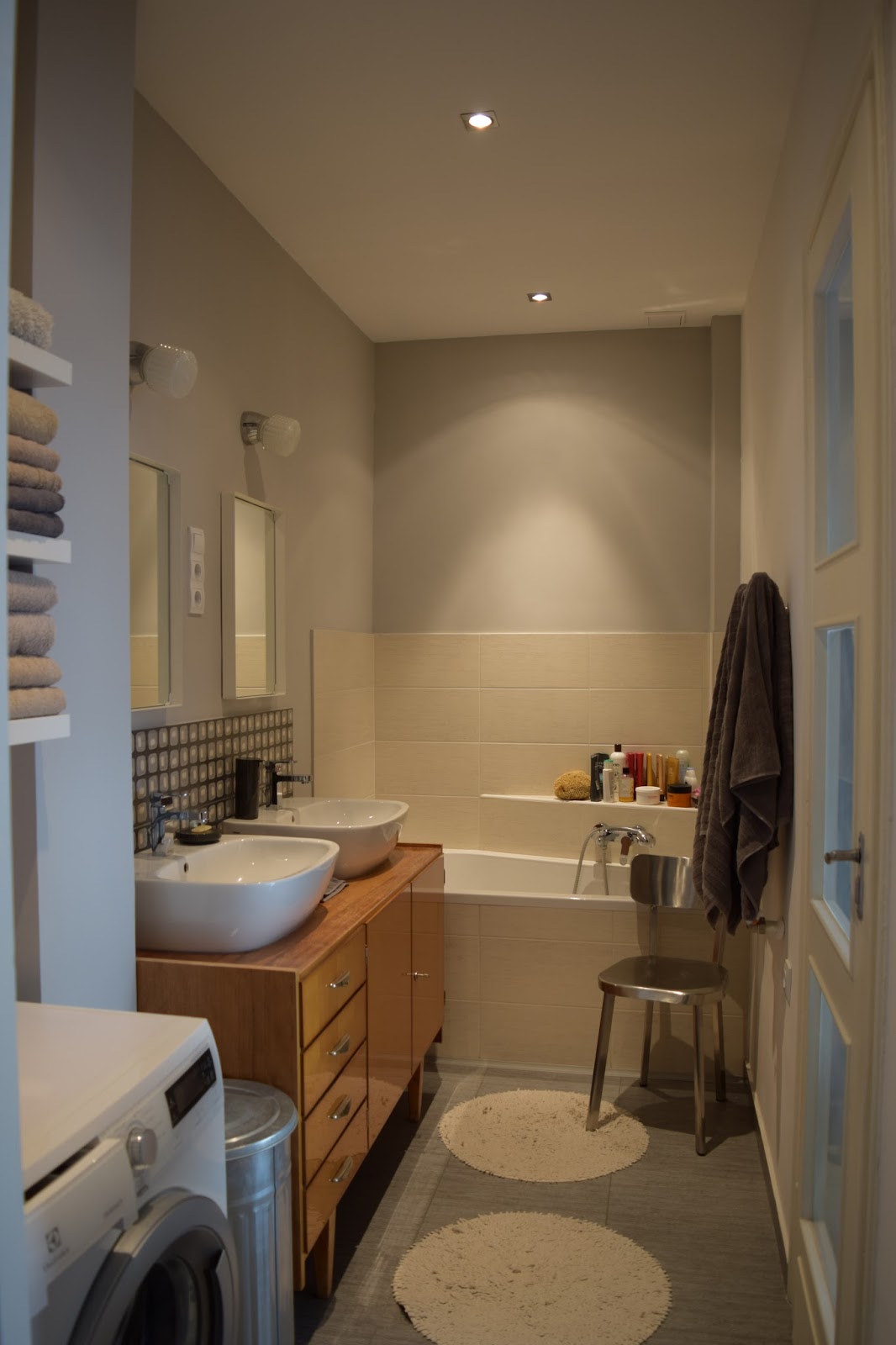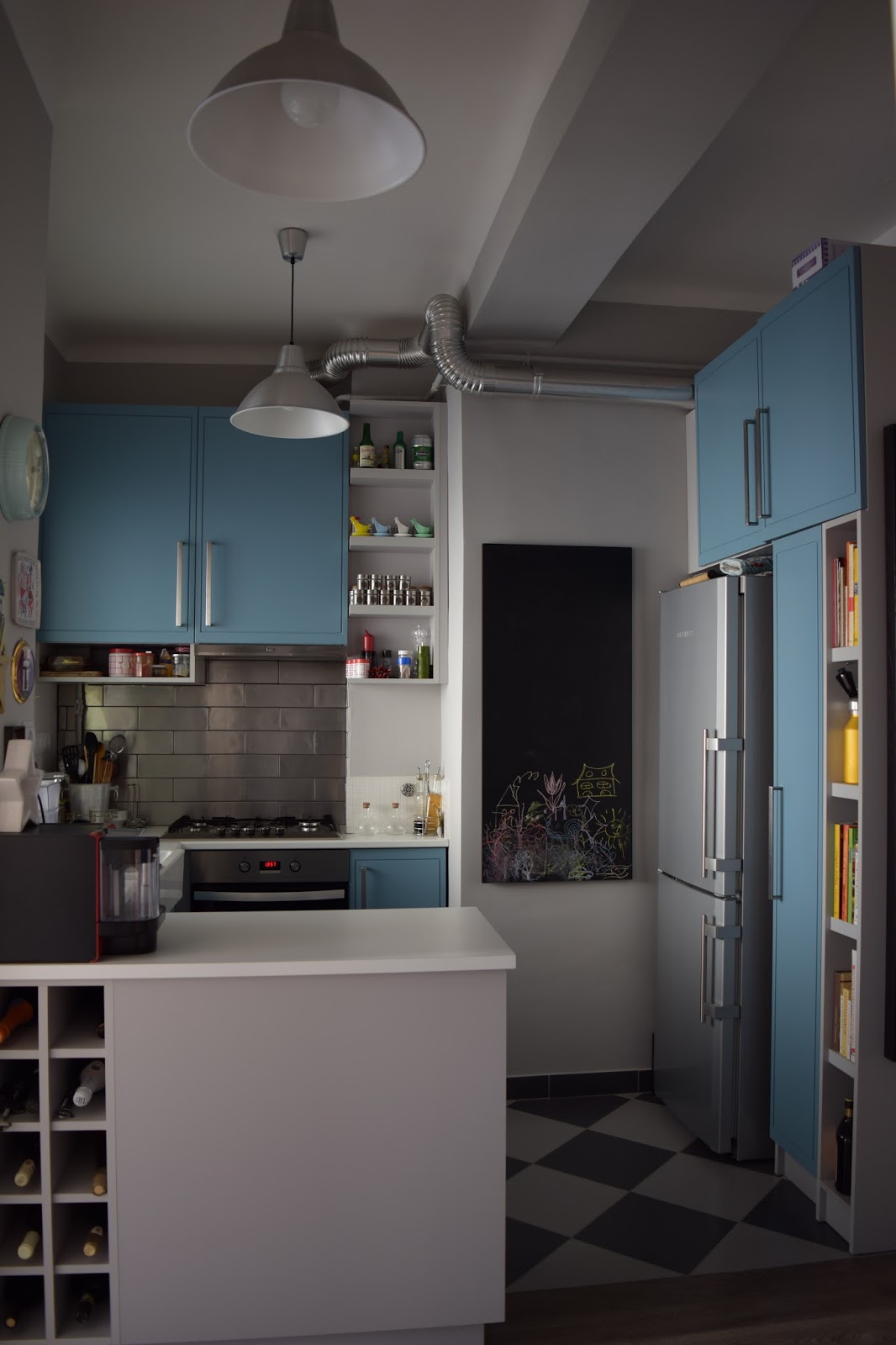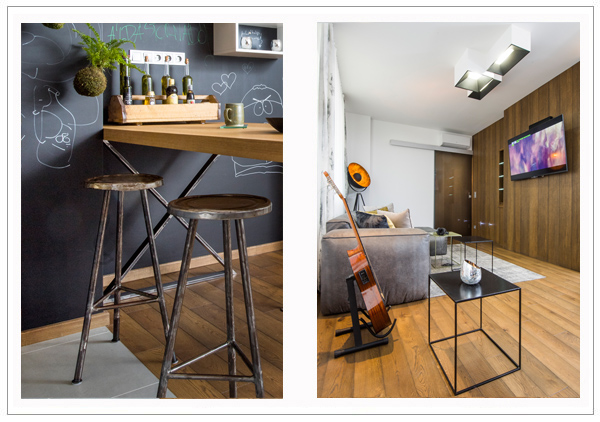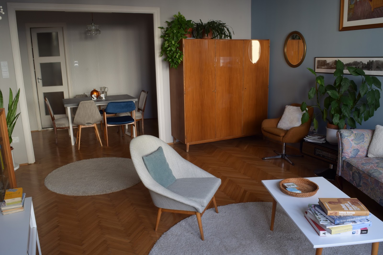 A kiváló beosztású, 70 m2-es lakás a XI. kerületben, a Karinthy Frigyes úton található egy, a 40-es évek elején épült késő bauhaus házban. Nagyon sokáig kerestek maguknak otthont, és amikor ide beléptek, a lakás lepukkantsága ellenére azonnal érzezték, hogy "ez az". Nagyon kedvező áron jutottak hozzá akkor, manapság a többszörösét is éri a lakás… A vásárlást követően megindult a gondos tervező munka. Akkor Luca még nem járt a lakber iskolába, de már rettenetesen érdekelte a dolog.