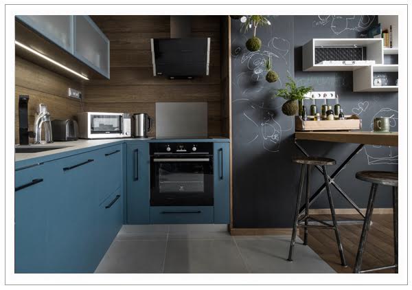 Szintén egyedi tervek alapján készült el a kék konyha.