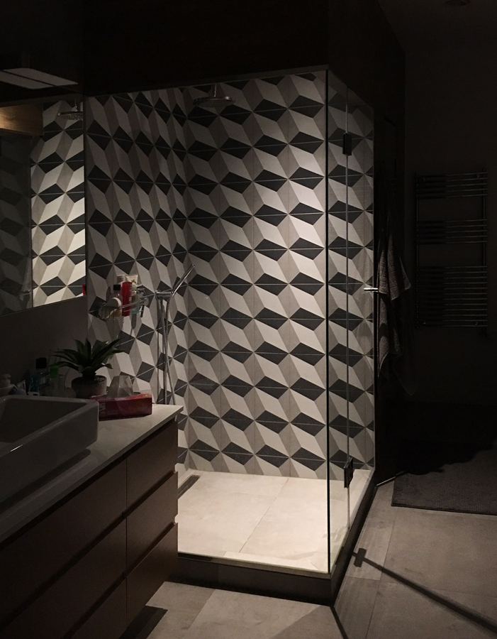 Terveztem világítást a zuhanykabinba is… :)