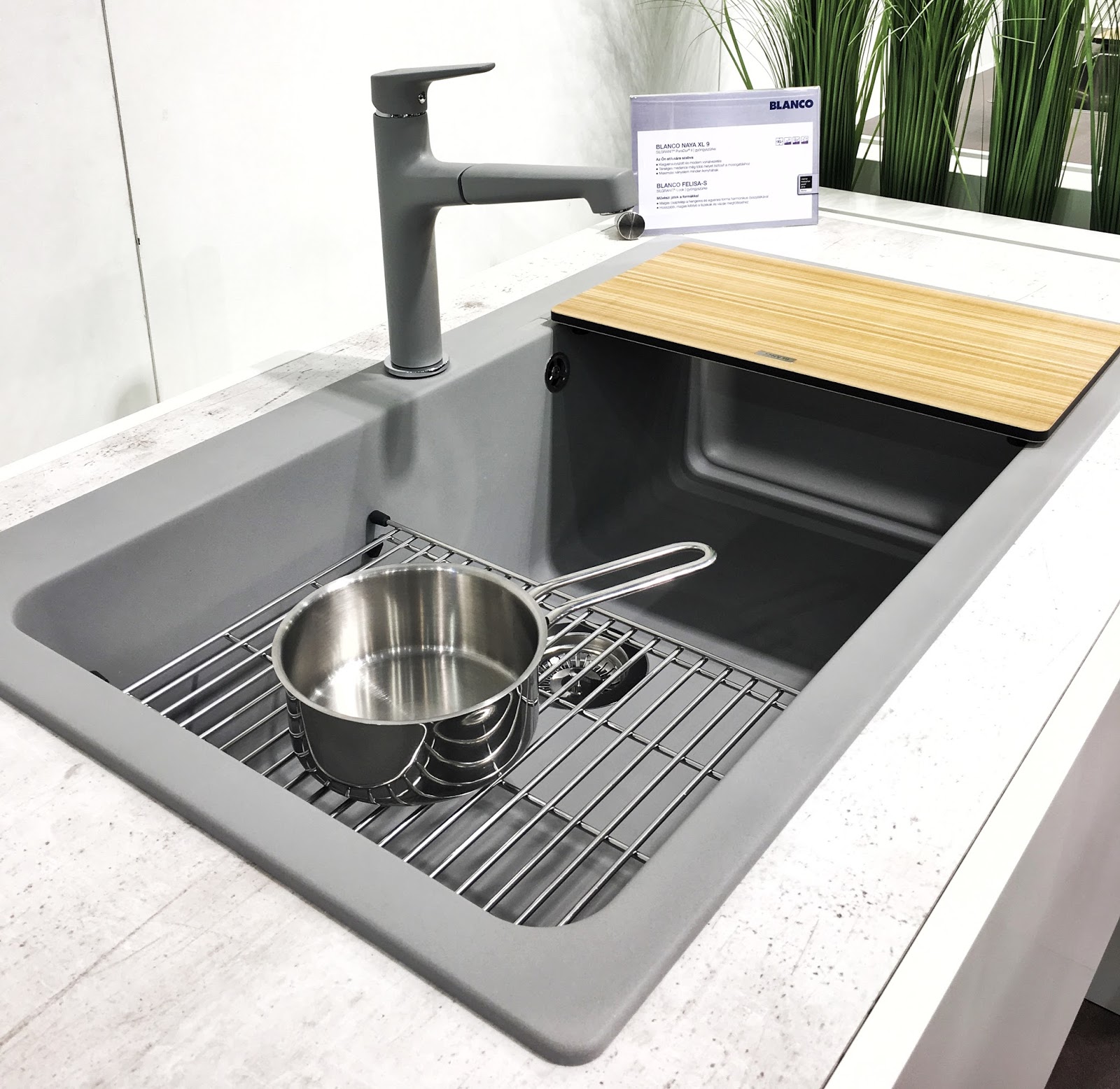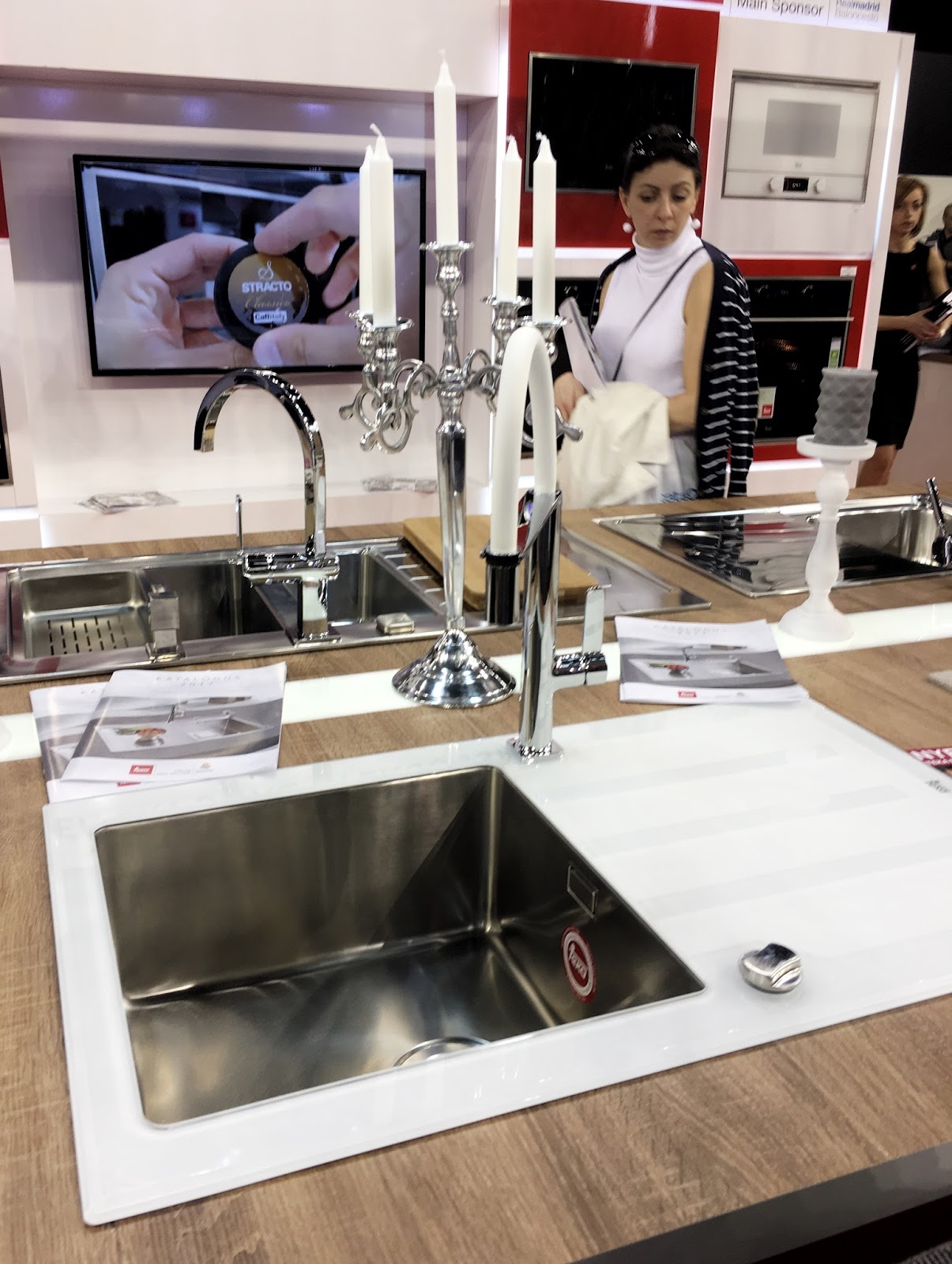 A Blanco is képviseltette magát. Hoztak egy csomó mosogatót, meg csaptelepet. Köztük volt ez az üveg darab: