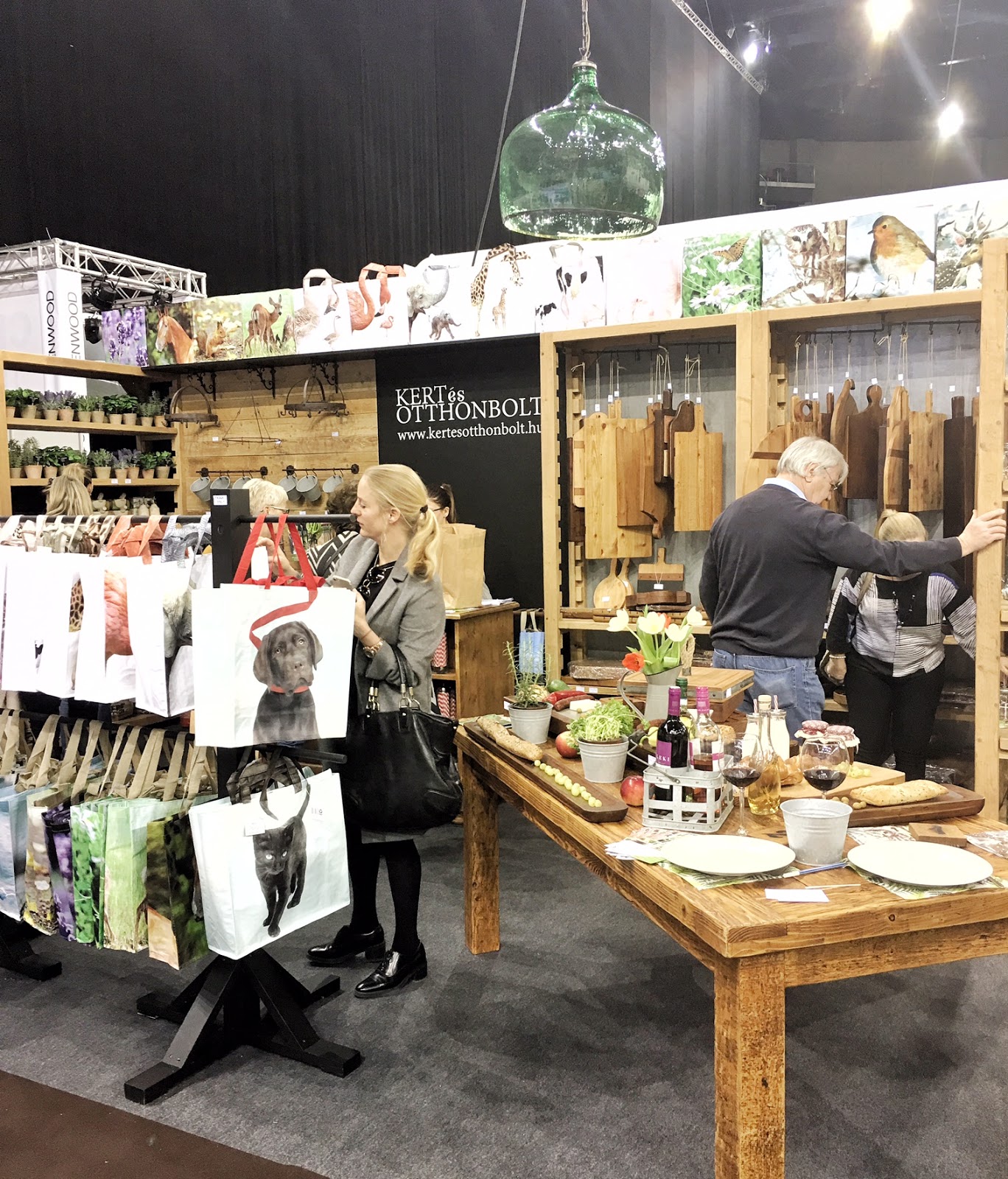 A Kert és otthonbolt webáruház standja nagyon hangulatosra sikerült, tele konyhába való szuper cuccokkal. A tesóm vett is mindjárt egy flamingós szatyrot… Én teljesen rákattantam a mű fűszernövényekre és a szépséges vágódeszkákra…