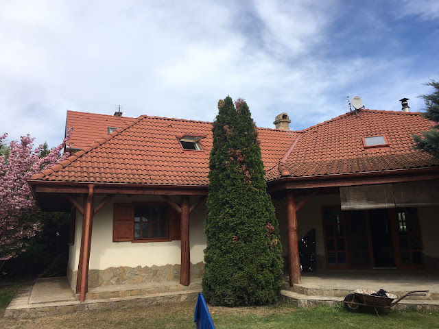 Menjünk át az ablakos konyhafalra. Itt az ablak ugyanolyan kicsike volt, mint a többi ezt mi kiszedettük, és jó nagyra cseréltük. Nem akartam bele osztást, ezért nem nyitható, de bukóra állítható. Ez nekünk nem gond, mert van a konyha mellett közvetlenül egy nyitható ablak, ha valamiért nagyra akarom tárni (pl. felgyújtottam volna valamit, bár - ezt most lekopogom - ilyet 20 éves korom óta nem csináltam, mondjuk akkor elég kemény volt a helyzet… ). Persze ehhez kellett az is, hogy átgondoltam, hogy le lehet mosni kívülről is a garázsbeálló tetejéről.