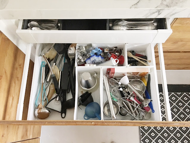 Ami még érdekes lehet, és ez új találmányom, de nagyon örülök neki, hogy rájöttem, hogy a kiskütyüknek az alsó fiókban milyen szuper helyük lesz az Ikea SKUBB fiókba való tárolódobozkáiban… Végre rendesen egy helyen tudom tárolni a mézeskalács formákat például… :)
