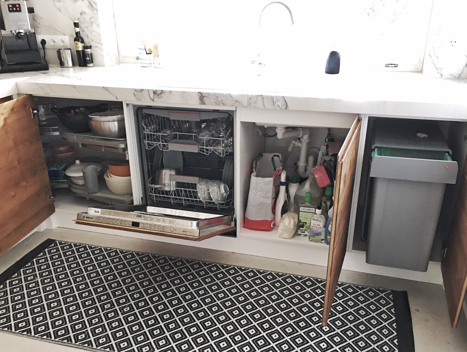 Ide került a mosogató. Lefotóztam az ajtókat nyitva. No styling, szóval pont ennyire vagyunk rumlisak a hétköznapokban… :)
