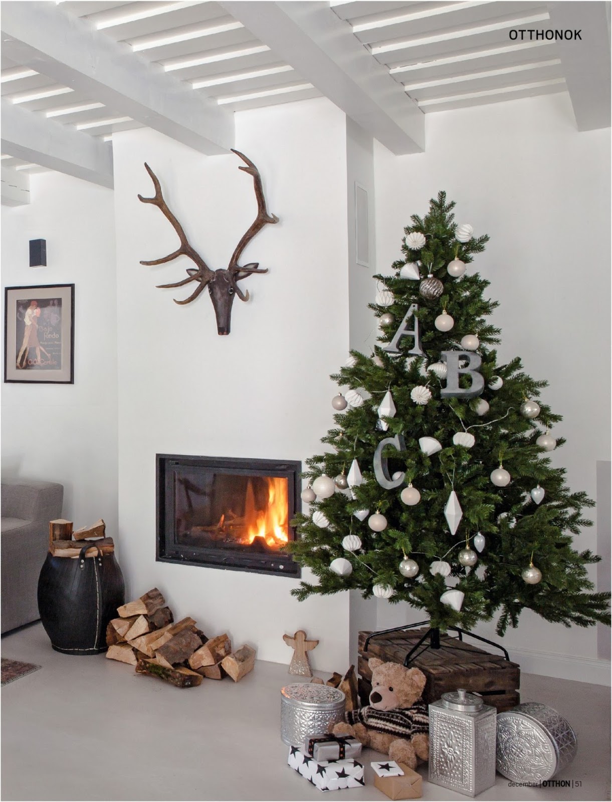 dekorok és az elég nagy helyet elfoglaló, vagy inkább kitöltő karácsonyfa,