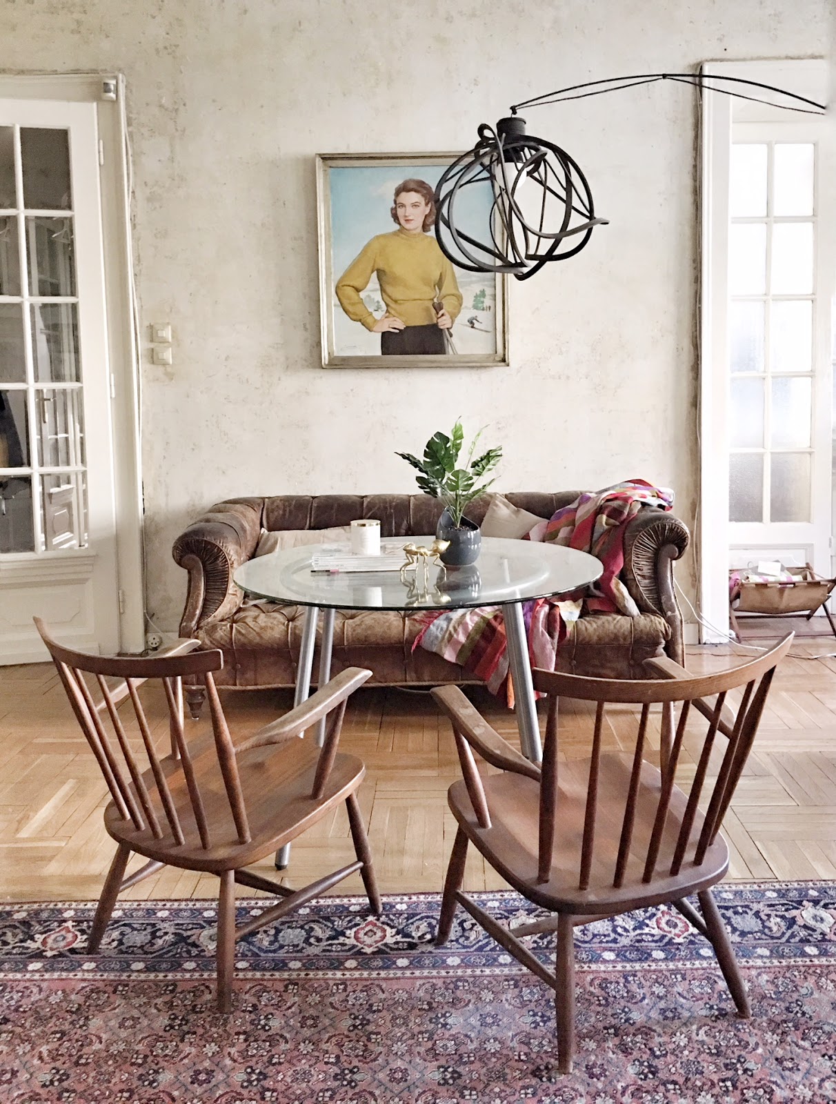 De annak a lakásnak se kellett lemondania a kis pálcás darabokról, amelybe eredetileg szántam őket, csak nem az étkező asztal mellé kerültek. A kanapéval összhangban lévő, vízzöldre festett szőrmék szuper-kényelmessé varázsolják a légies kis foteleket...
