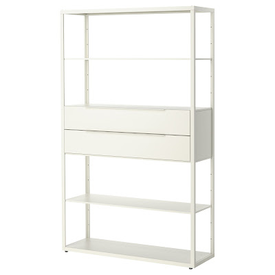 Egyszerű könyvespolc a Fjalkinge (ITT), ahol a kevésbé látványos elemeket fiókba rejthetjük.