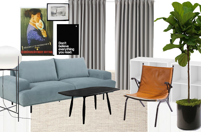 Szeretnék mutatni egy gyors példát, hogy eloszlassam azokat a tévhiteket, hogy valami pálforduláson mentem át, és innentől csak designer darabokra hajtok, vagy ilyesmi.... Az alábbi lakás a mai ízléses közhelytár mintaképe. Én sajnos már rosszul vagyok a látványtól - manapság minden önjelölt lakberendező ilyenekkel haknizza körbe a facebookot - rengeteg magyar példát tudnék hozni, de minek sértegessek bárkit is. Hoztam külföldről egyet... Az alapdarabok nem rosszak: Ikea Besta tv bútor (egyik kedvencem), Ikea Vittsjö szekrény (imádom), Eames szék replica (halálosan unom már, de amúgy nyilván nagyon jó darab), mellette egy Martini side table (zseniális, itthon nem annyira elterjedt, az USA-ban viszont eléggé), valami szürke kanapé (jó választás, mindig az alapdarabok visszafogott színválasztására buzdítok mindenkit), kamu szőnyeg, egyen márványlapos asztal (Vivre, IDdesign, stb... helyek állandóan változó kínálatában). Ez tulajdonképpen az internetről három kattintással összeguberálható alap bútorozás. Rossz? Nem! (Én mondjuk a széket és a szőnyeget semmilyen körülmények között nem választanám be, pont azért, mert a sok használat miatt elkommercializálódott - ha van ilyen szó...).