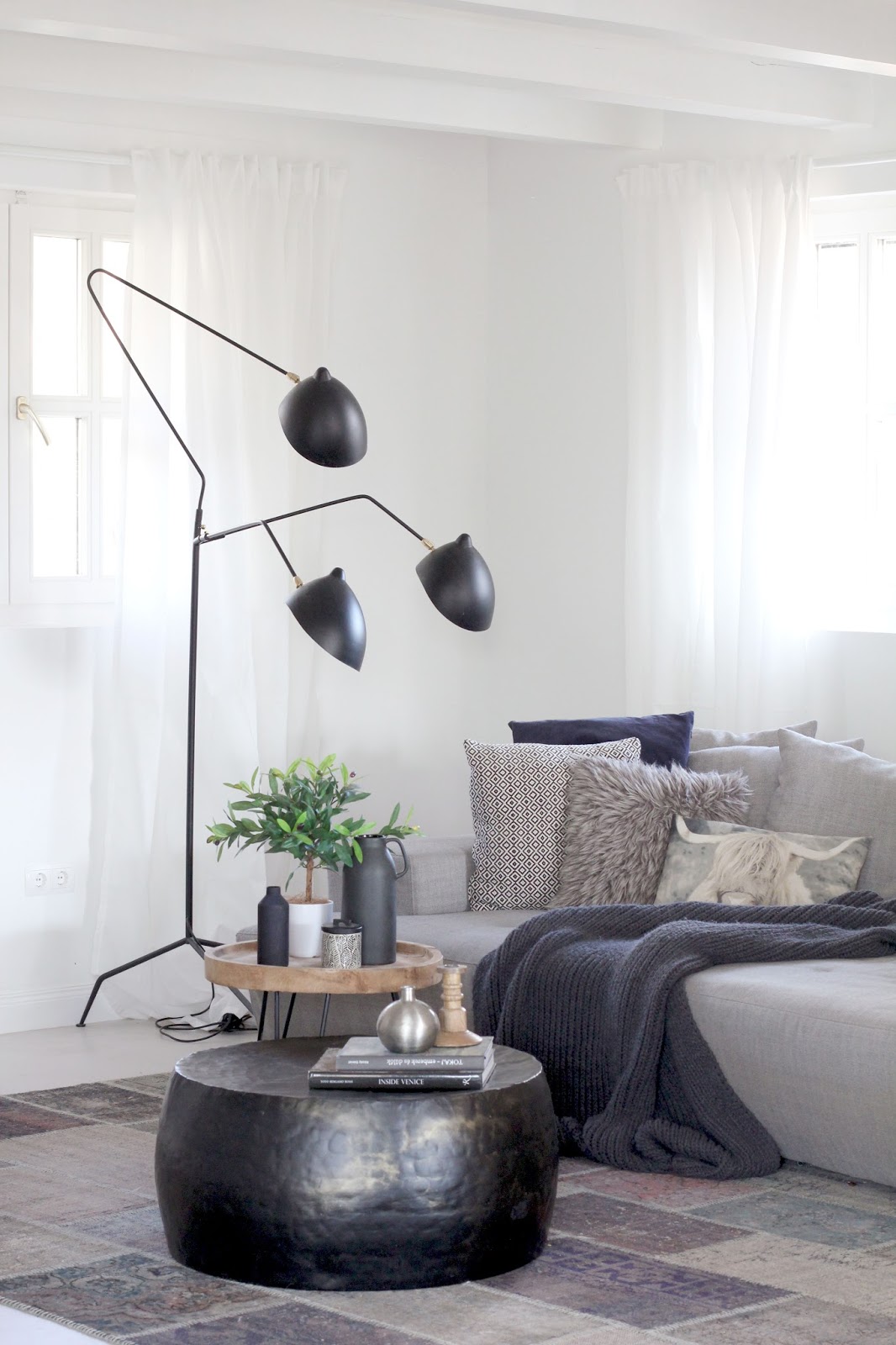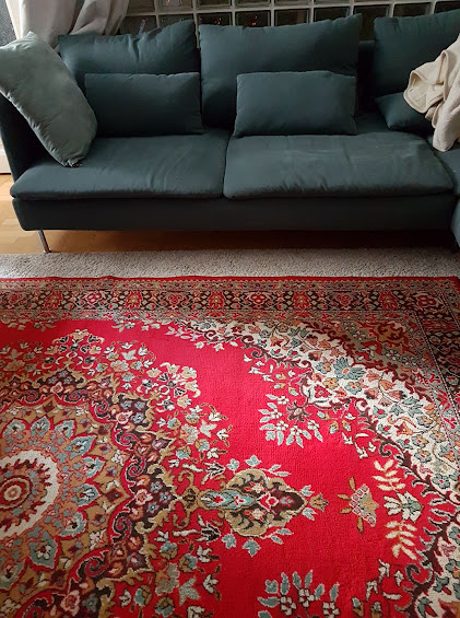 Itt a nevezetes fotó, ahol - gondolom - a lakás tulajdonosa kérdezi, mi a véleményünk, mennyire megy a modern kanapé ezzel a szőnyeggel...