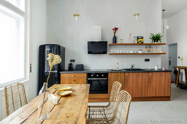 - A lakás konyhája méretében tökéletesen ideális egy rövid távú apartmannak. Ha végig megyek az alsó elemeken: fiókos (felül evőeszközök, középen tányérok, alul lábasok), utána sütő, utána 9 személyes mosogatógép, utána mosogató alatti szemetes, utána még mindig van egy belső fiókos elem, amibe még elfér minden, amire esetleg szükség lehet. A nyitott polcos tárolás pedig - hosszú távú tapasztalatom, magam is visszatérően választottam - tökéletesen alkalmas poharak, bögrék, tányérok tárolására. Hosszú távra, állandó berendezkedésre valóban kicsit kicsi - de ezt könnyen lehet orvosolni zárt felsőszekrények felszerelésével például. Illetve nem mindenki vezet nagy háztartást, van aki semmilyet, ezt is tudomásul kell vennünk.