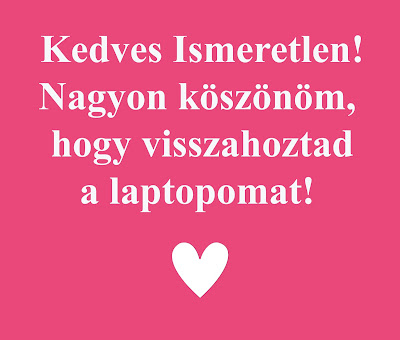 Feltettem a privát oldalamra, megosztottam itt, a Térkultúrán, és vártam, hátha... De ami történt, az minden várakozásomat felülmúlta! Egy nap alatt több, mint 3400 ember megosztotta a levelemet! Ez rengeteg! Biztos közületek is nagyon sokan, és el nem tudom mondani, milyen jól esik ez nekem, nagyon köszönöm!!! Tesóm este felment a várba a borfesztiválra, és mesélte, hogy nem találkozott olyan ismerőssel, és annak az ismerőseivel, aki ne tudott volna a laptopomról... Micsoda hülyeség, hiszen nem is egy nagy sztori, mindennap elvesznek laptopok, szinte szégyellem, hogy ennyi ember éppen az enyémmel foglalkozott ennyit.