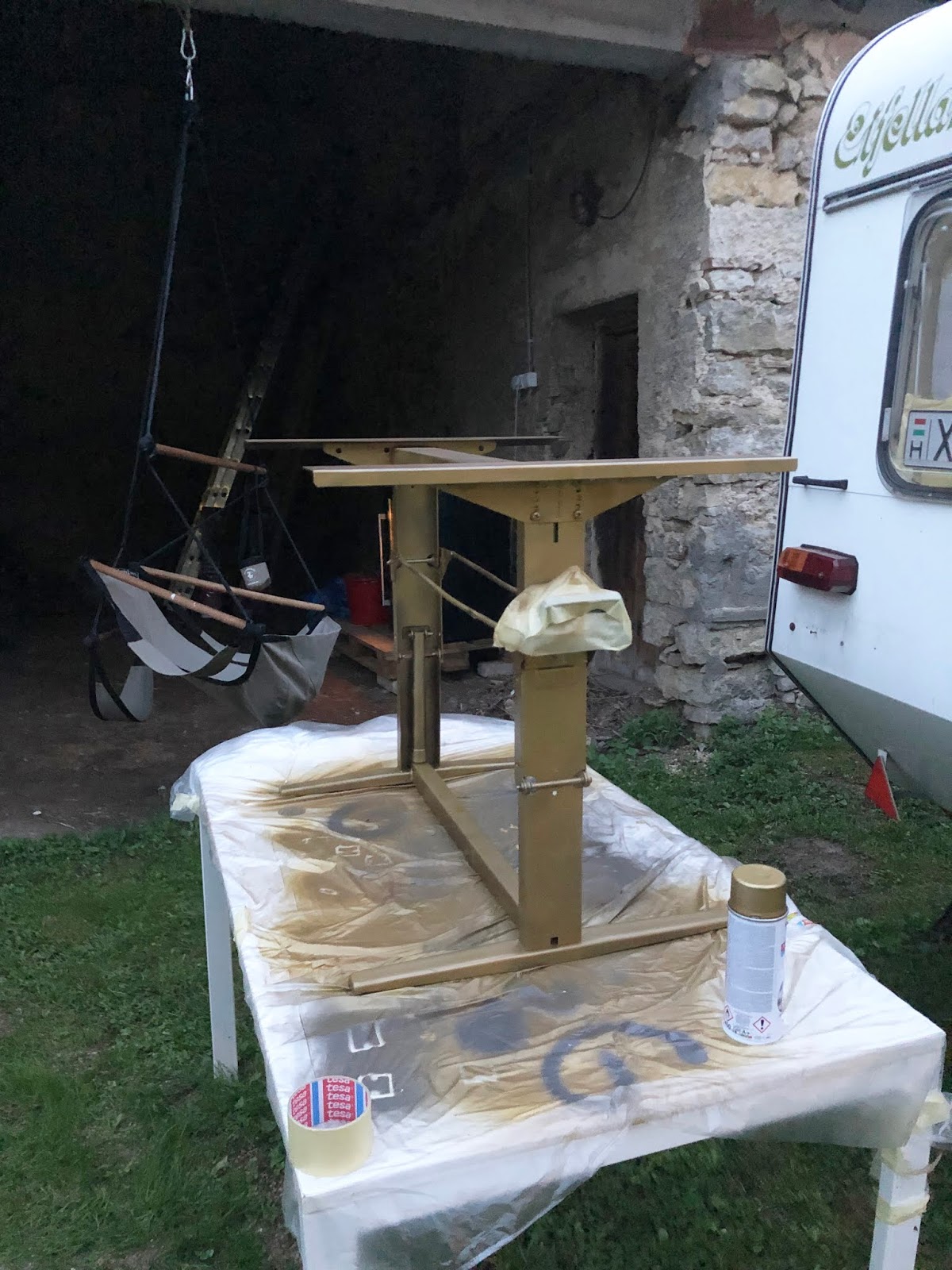Annyira belejöttem, hogy az ággyá alakítható asztal csufi barna lábát is learanyoztam... :) - Ez itt még csak az első réteg: