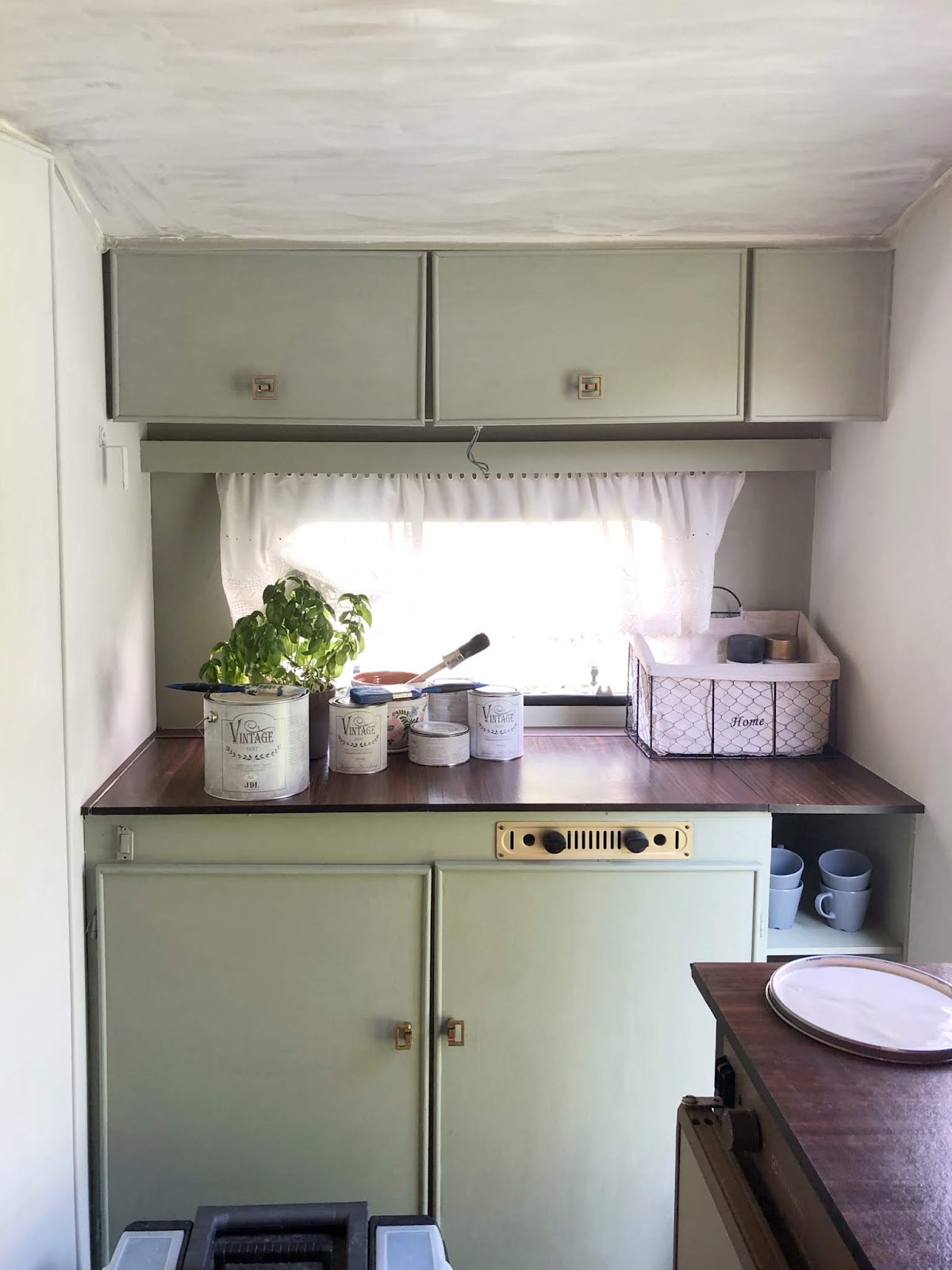Első körben a Moss Green Vintage Paint került fel a konyhabútorra, majd megkezdtem a falak és a mennyezet festését.