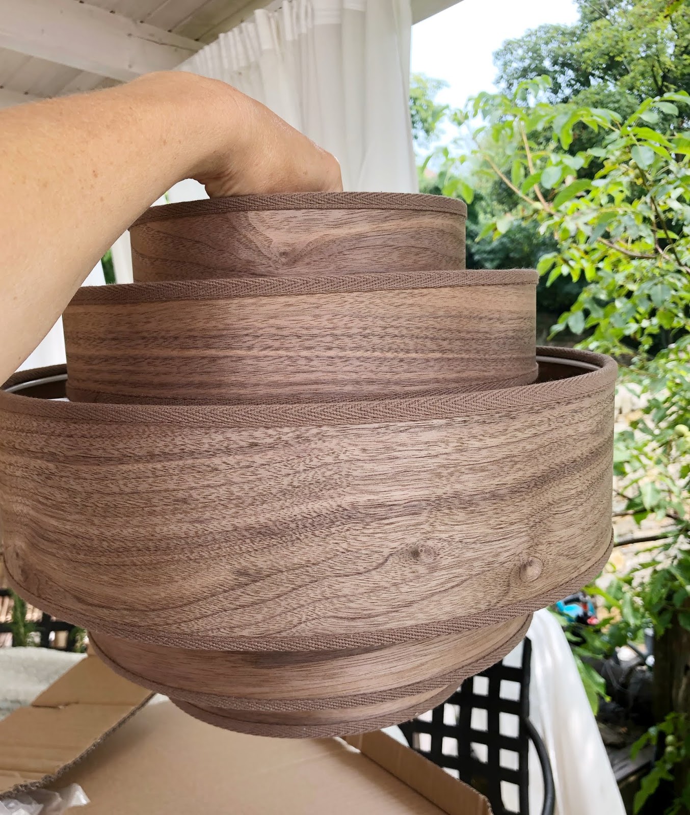 És egy részleteiben is gyönyörű dió furnér lámpát a DeerDecortól (ITT), amely fantasztikusan feldobja az egész teret. Érdekes, először nem ilyen modernre hangolt lámpában gondolkodtam, de amikor megkaptam az e-mailt a fényképpel (ITT), rögtön éreztem, hogy beletrafáltak... :). A lámpának csak a búráját használtam fel egyelőre, mert az eredetileg felszerelt lámpatesten található egy kapcsoló is, ami azért jól jön.
