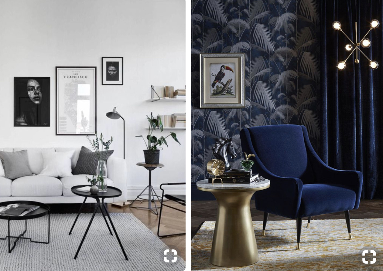 Első körben két olyan enteriőr fotóját szavaztattam meg, ahol az egyik kép objektív szabályok mentén sokkal jobb, mint a másik. Nehéz dolgom volt, mert nagyjából hasonló beállítást, témát és színvilágot kerestem a Pinteresten. Azt hiszem, végül a kicsit "melegebb" sárgás fényviszony viszonylag sok szavazatot generált a "rossz" kompozíciónak is, ennek ellenére nagyon egyértelműen kijött, hogy igen, létezik objektíven szép (és kevésbé szép) enteriőr. Hiszen 550 szavazatnál megállva 471 fő mondta a jobb oldali képre, hogy az tetszik neki jobban, és csak 79 szerette jobban a bal oldalit.