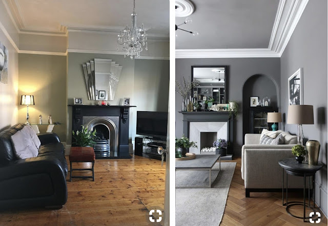 Pontosan meg tudom mondani, hogy mi vonzotta a 79 főt... A melegebb színárnyalat, a rusztikus padló, és az általam nagyon nagyra becsült kollégám - aki a jobb oldali enteriőrt választotta végül - "pedig..."-je. Ami - ha tippelnem kell - éppen az egyik kéretlen hozzászóló véleményére fog rímelni, (mintha a számból vette volna ki a szót): a bal oldali enteriőr kandallója és tükre sokkal különlegesebb a jobb oldalinál. (Amúgy szerintem a stukkózása is sokkal nagyvonalúbb, a kis zsámoly pedig sokkal élőbbé és kevésbé kommersszé teszi az összhatást a jobb oldalinál). Mindezek mellett én is a jobb oldalit választom. Mert ott van kompozíció, ami a szemnek kellemesebbé teszi. Néhányan azt írták, hogy a jobb oldali enteriőr letisztultabb. Mégis mitől volna az? A facebookon mindkét kép felét levágtam, de úgy is sokkal kevesebb tárgy volt a bal odali enteriőrben. Egyszerűen a jó kompozíció átláthatóbbá és rendzetettebbé tette az összhangot a sokkal több kütyü ellenére is.