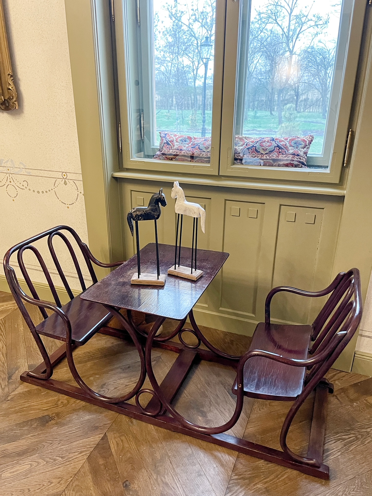 Nem tudok elmenni szó nélkül a kastély műtárgyai és bútorai mellett sem. Hihetetlen jó érzékkel összeválogatott tárgyak képezik a berendezést és a dekorációt, tökéletes arányérzékkel elrendezve mindent. Micsoda élmény lehet tárgyakat vásárolni ebbe a csodálatos épületbe, és milyen szerencse, hogy ilyen jó ízésű emberek vették birtokba, és mentették meg az utókornak ezt a különleges birtokot.