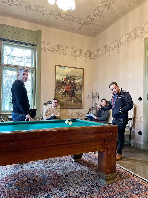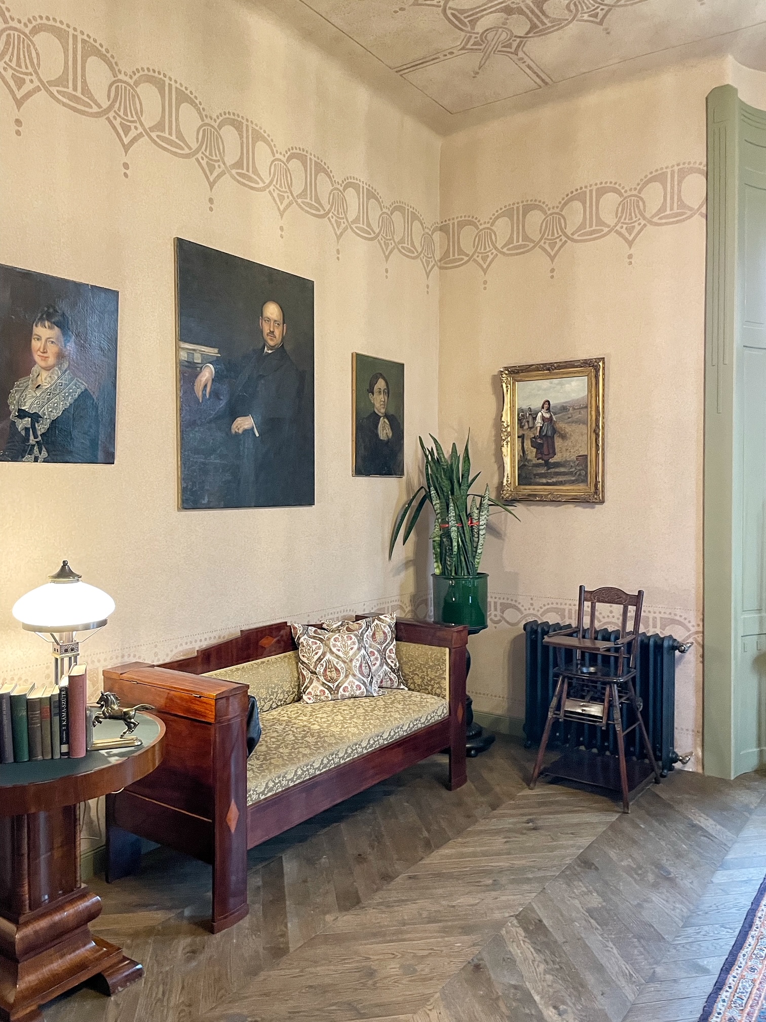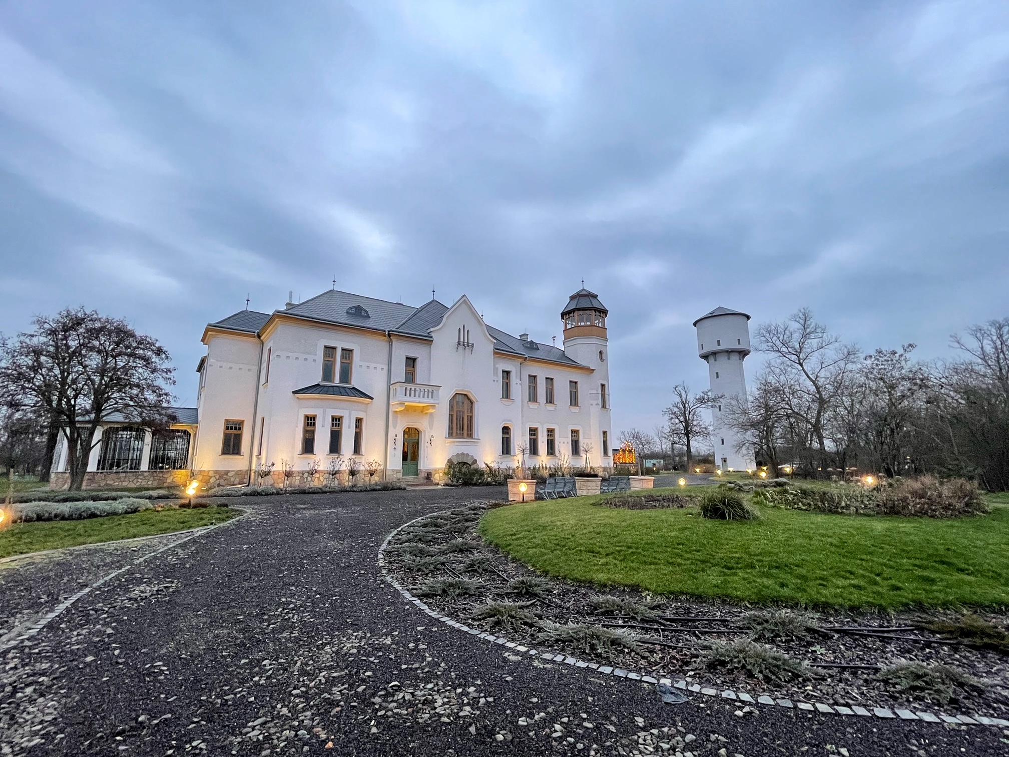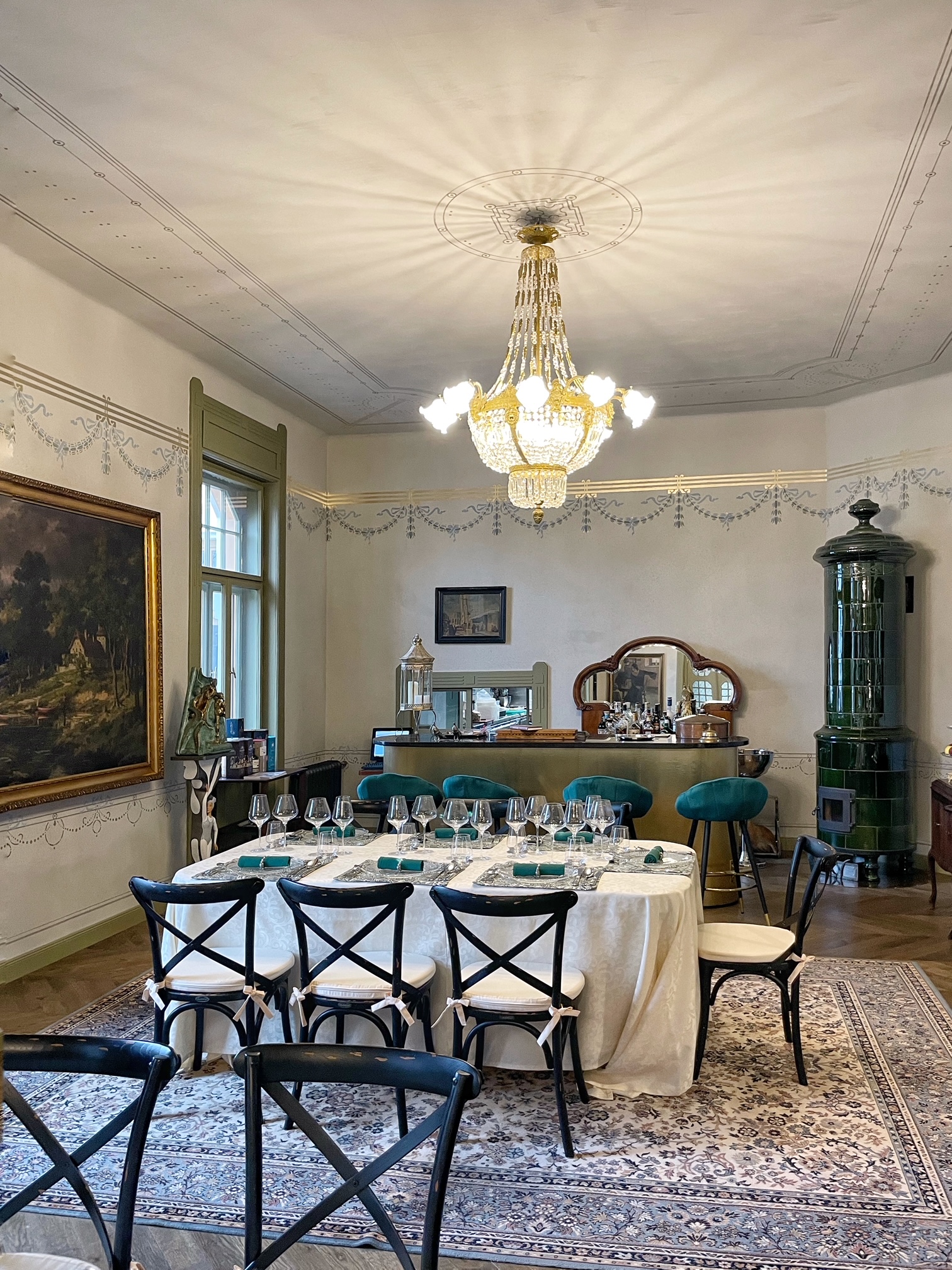 A műemlék, ezerkilencszázas évek elején épült szecessziós kastély a lehető legszakszerűbben lett restaurálva, Györgyi azt mesélte, hogy a műemlékvédelemmel nekik együtt dolgozni nem a szokásos, alkudozásos veszekedés volt, hanem a legnemesebb együttműködés, ahol mindkét fél azon tevékenykedett, hogy mindent megtartsanak, ami eredeti, és mindent helyreállítsanak, amit lehet. Nem csak úgy, mintha, hanem pontosan azokkal az anyagokkal, és azokkal a technológiákkal: a falon gondosan feltárt dekorációs festést páldául az eredeti, mauritiusi kék kőből készült festékkel rekonstruálták.