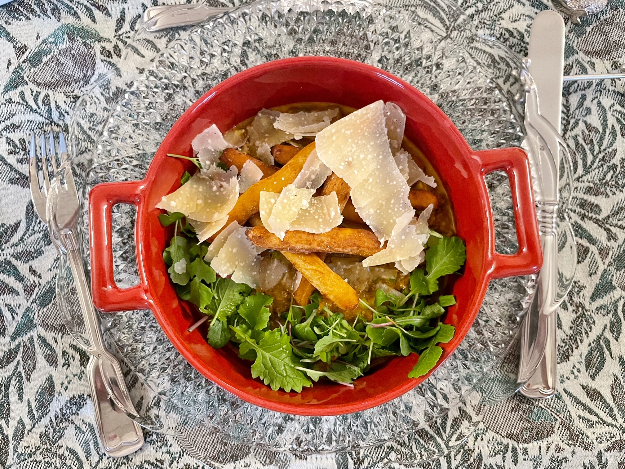 Minden irigység nélkül, a lehető legjobb szívvel mondom ki, hogy Györgyiék azt az életet élik, amit én szeretnék: 20+ hektáron gazdálkodva, állatot tartva, növényt termesztve, maximálisan minőségi gasztronómiát kínálva, vendégeket jó szívvel látva, csodálatosan nyugodt és esztétikus környezetben, művészettel és madárcsicsergéssel. Persze ez nem egyszerű, ezt a fajta minőségi, slow food koncepciót elég nehéz mérethazdaságosan üzemeltetni. A kastély vendégterében három kihúzható antik asztalnál 20-30 fő fér el. Van egy különálló, nagyobb vendégterű pavilon is, ahol kicsit nagyobb konferenciáknak, esküvőknek is helyt lehet adni, ezek a rendezvények biztosítják a működés racionalitását. Jelenleg különálló, hangulatos vendégházakban lehet megszállni, de készül már további hét vendégszoba is a főépület emeletén.